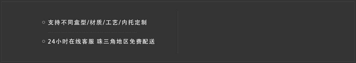 盒內置物定制:海綿、EVA、珍珠棉、綢布、織帶、絲帶、吸塑包裝等。